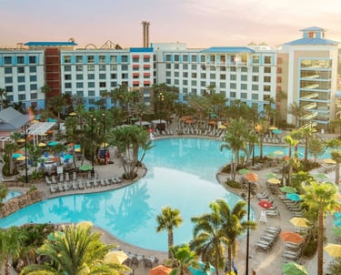 Recorreremos los hoteles Universal Terra Luna Resort, Universal Endless Summer Resort - Dockside Inn and Suites, Loews Royal Pacific Resort.